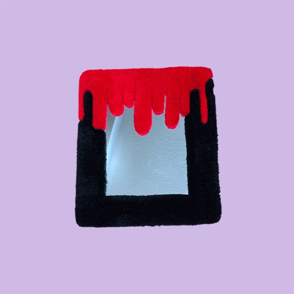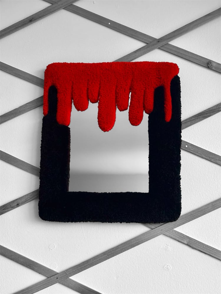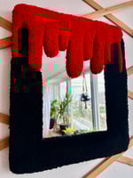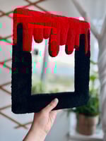 Add a bold, edgy accent to your space with this handmade tufted Blood Drip Mirror. Each piece is crafted with soft, high-quality yarn and comes with a built-in hanging loop for easy display. Perfect for adding texture and a statement piece to any room. Handmade in Canada!