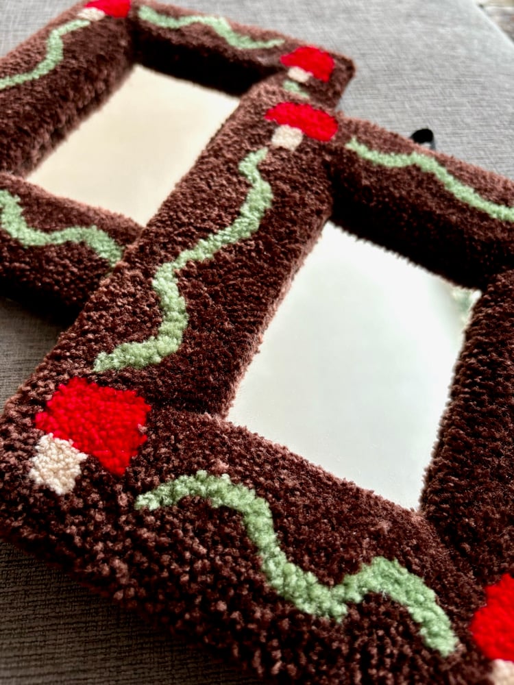Bring a whimsical, cozy touch to your walls with this handmade tufted Mushroom Mirror Rug. Each piece is crafted with soft, high-quality yarn and comes with a built-in hanging loop for easy display. Perfect for adding playful texture and charm to any room. Handmade in Canada!