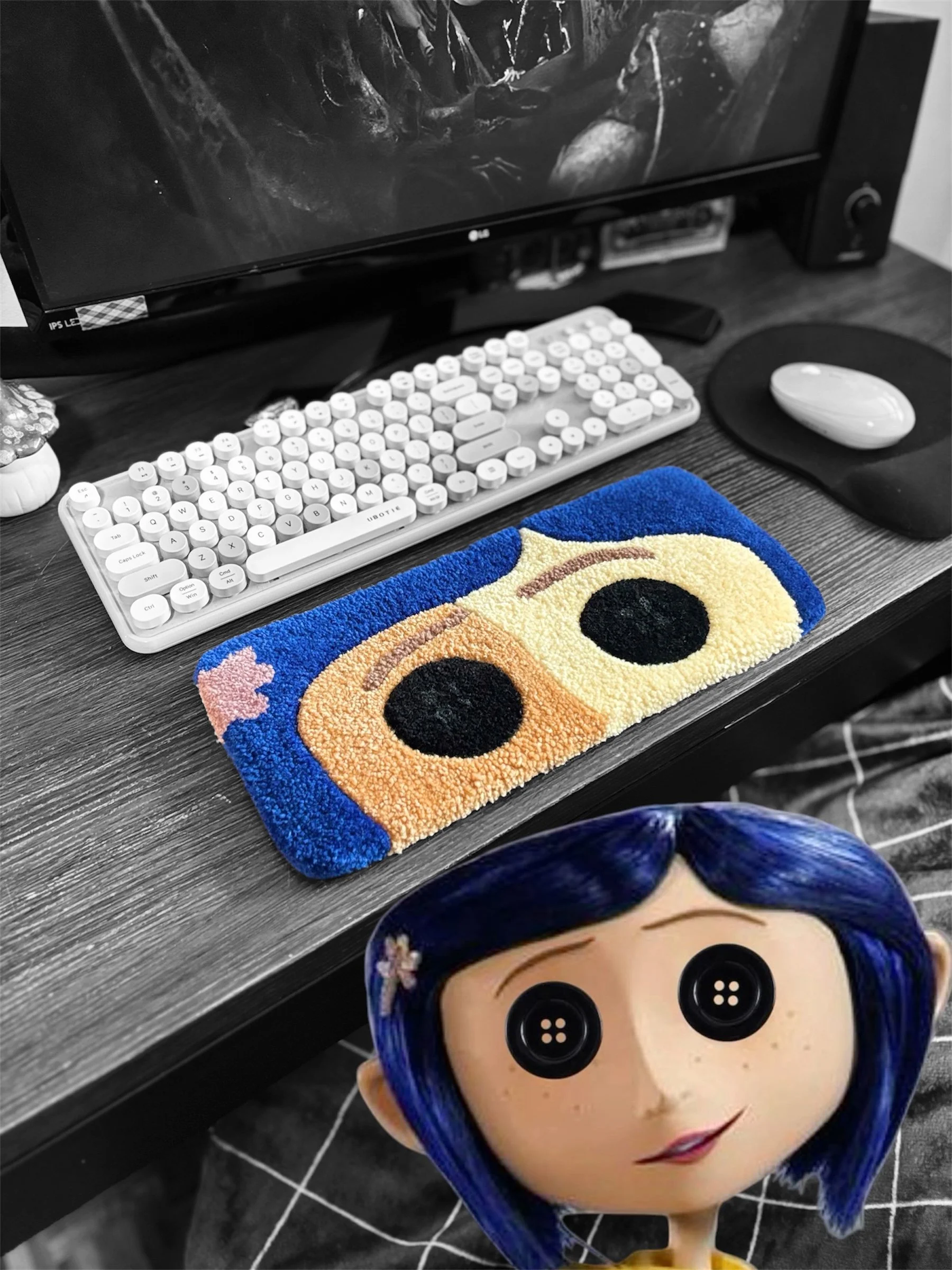 Ready to ship! Looking to add a little personality to your workspace? This tufted desk rug is both functional and decorative, giving your hands a soft, cozy place to rest while you work ✨ Use it in front of your keyboard or your laptop! 💻🧶