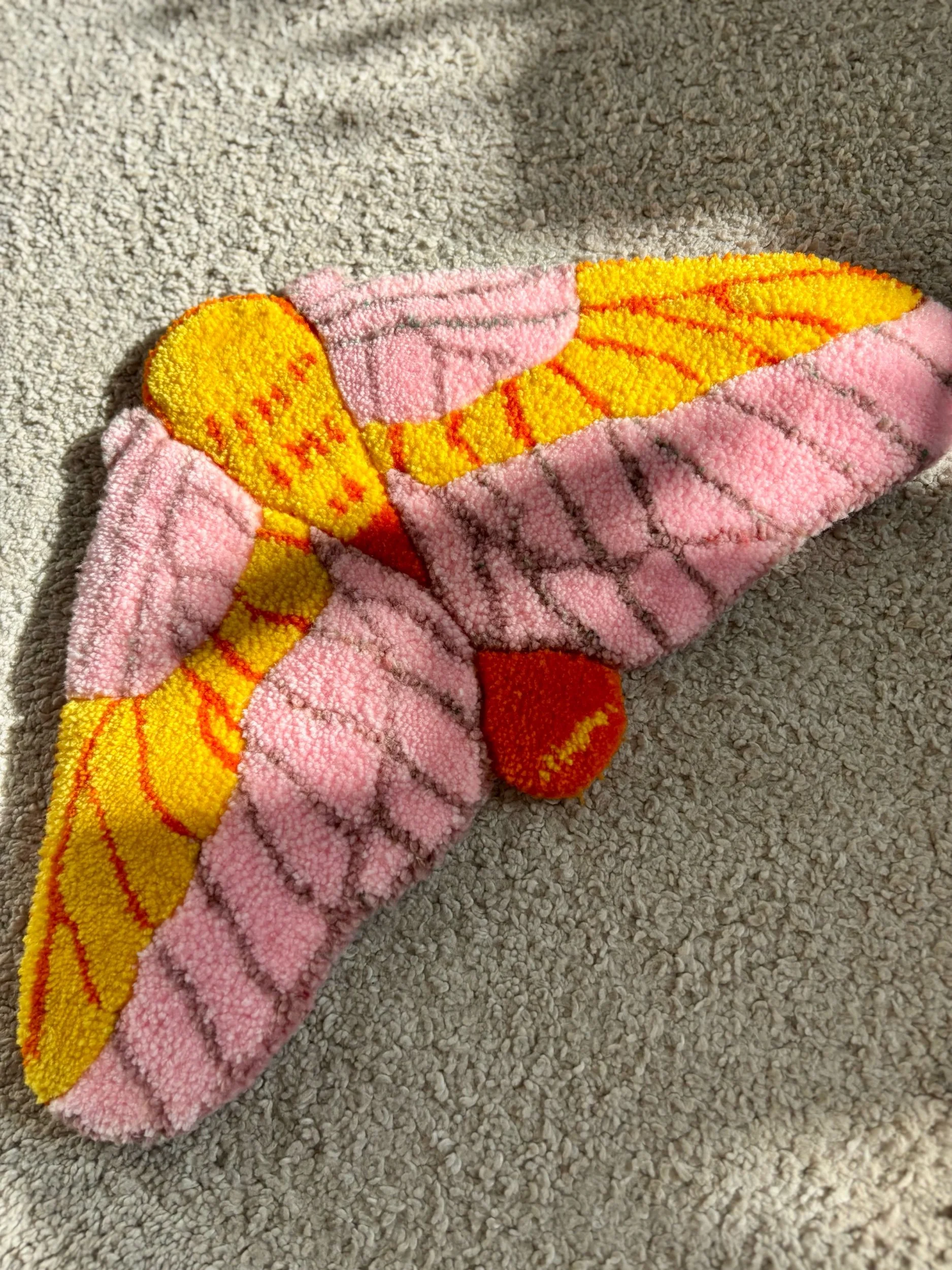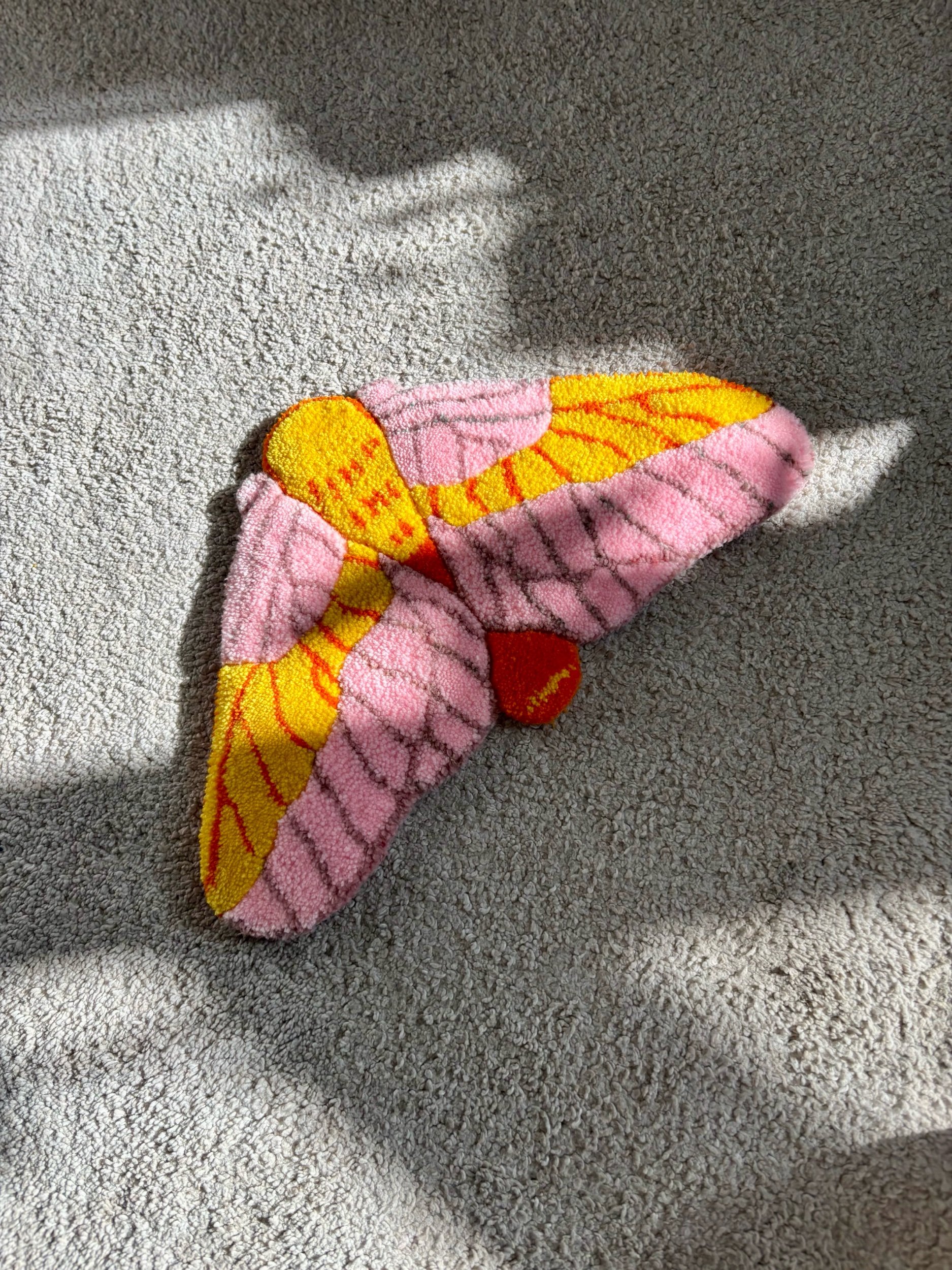 Design details: Rosy maple moth inspired, pink and yellow wings